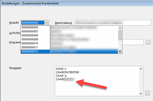 Es ist in X-Concept eine neue GDT Anbindung über die Zusatzmodule/Krankenblatt zu erstellen. Geben Sie dieser z.B. den Namen "EMIL Starten" und tragen Sie dort, wo der Pfeil hinzeigt auch einen passenden kurzen Namen ohne Leerzeichen in Großbuchstaben ein (z.B. "EMILGDT").