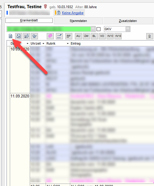 Die GDT-Rückgabe erfolgt innerhalb des ITC Systems im Visit über den Button Zum PVS im Menüband Start in den Verlaufsdaten.